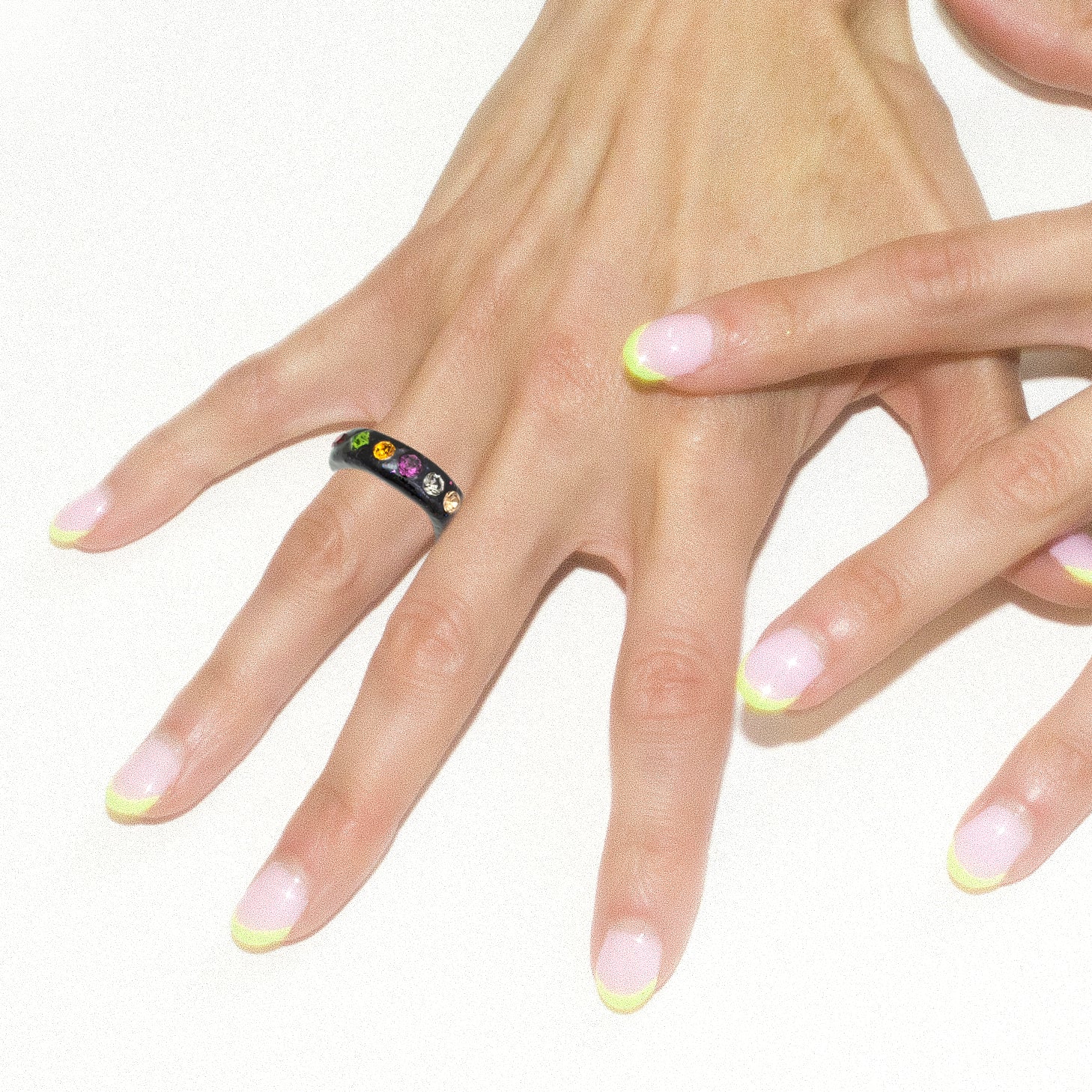 Please note: the ring pictured here may not be the exact ring you receive. This style comes with assorted stones, and each ring has a unique combination.