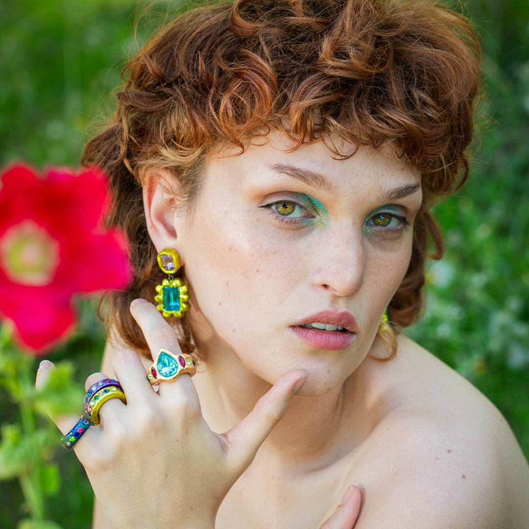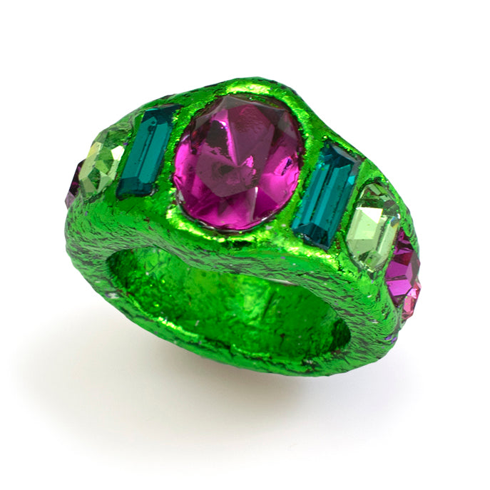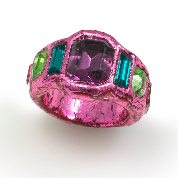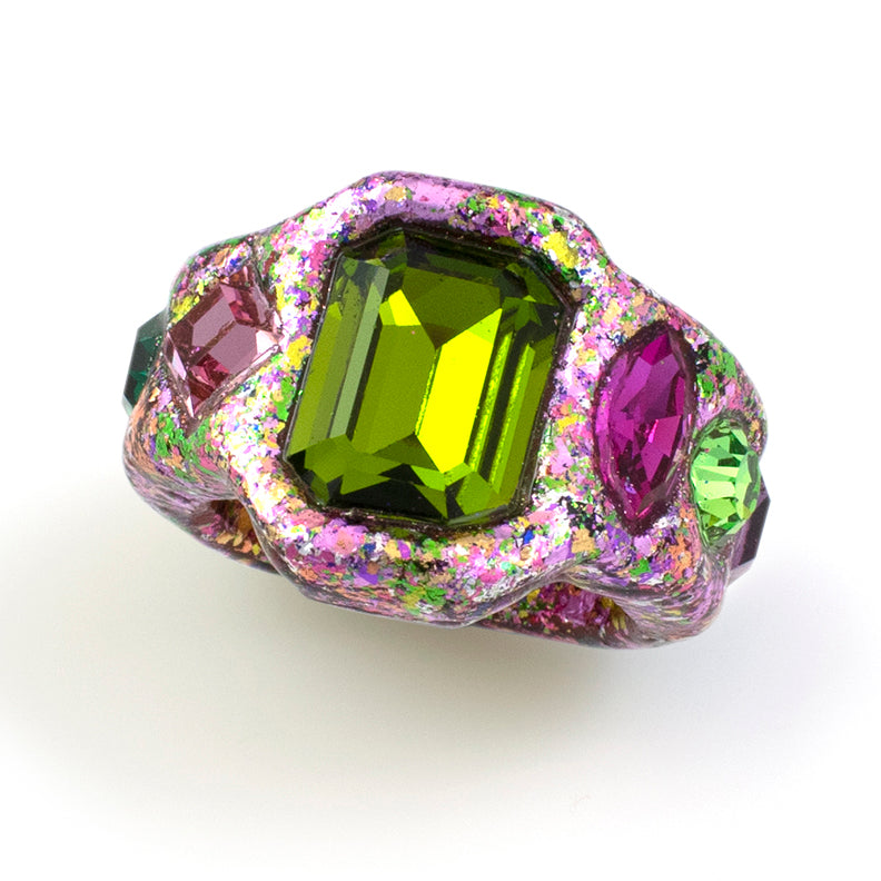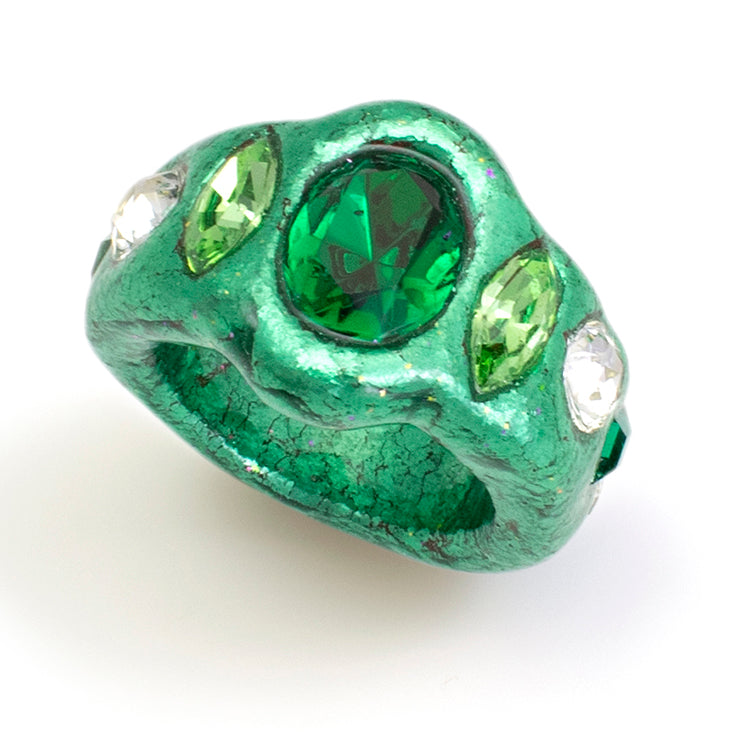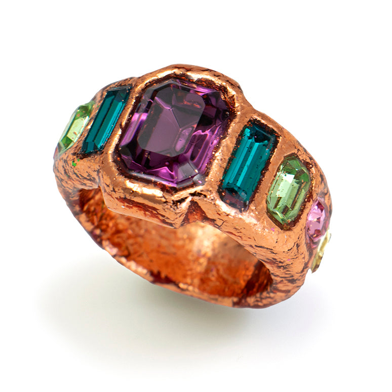 Focus your secret powers through a unique Center Stone Ring, made just for you, in your size, with Claire’s careful selection of rare & vintage rhinestones set into your choice of metal leaf color.