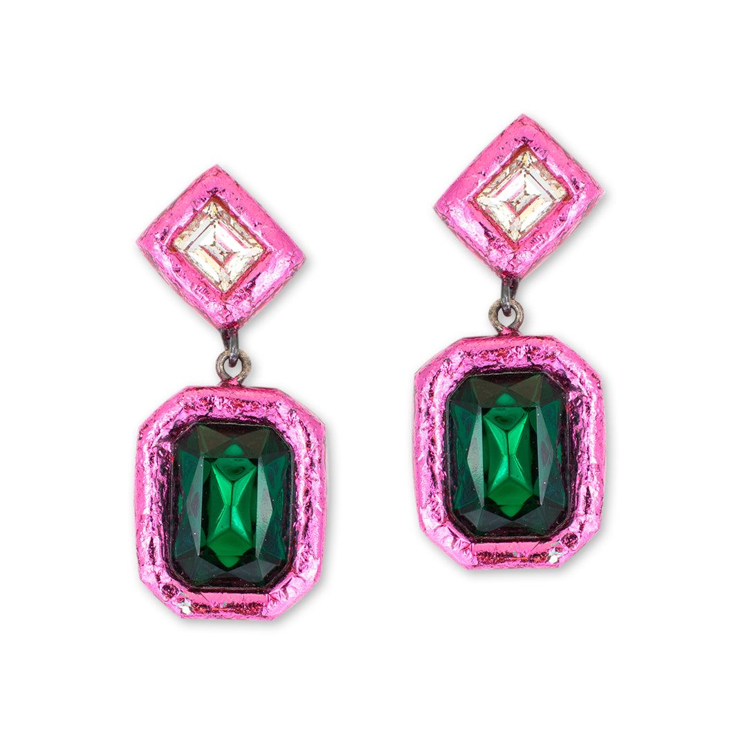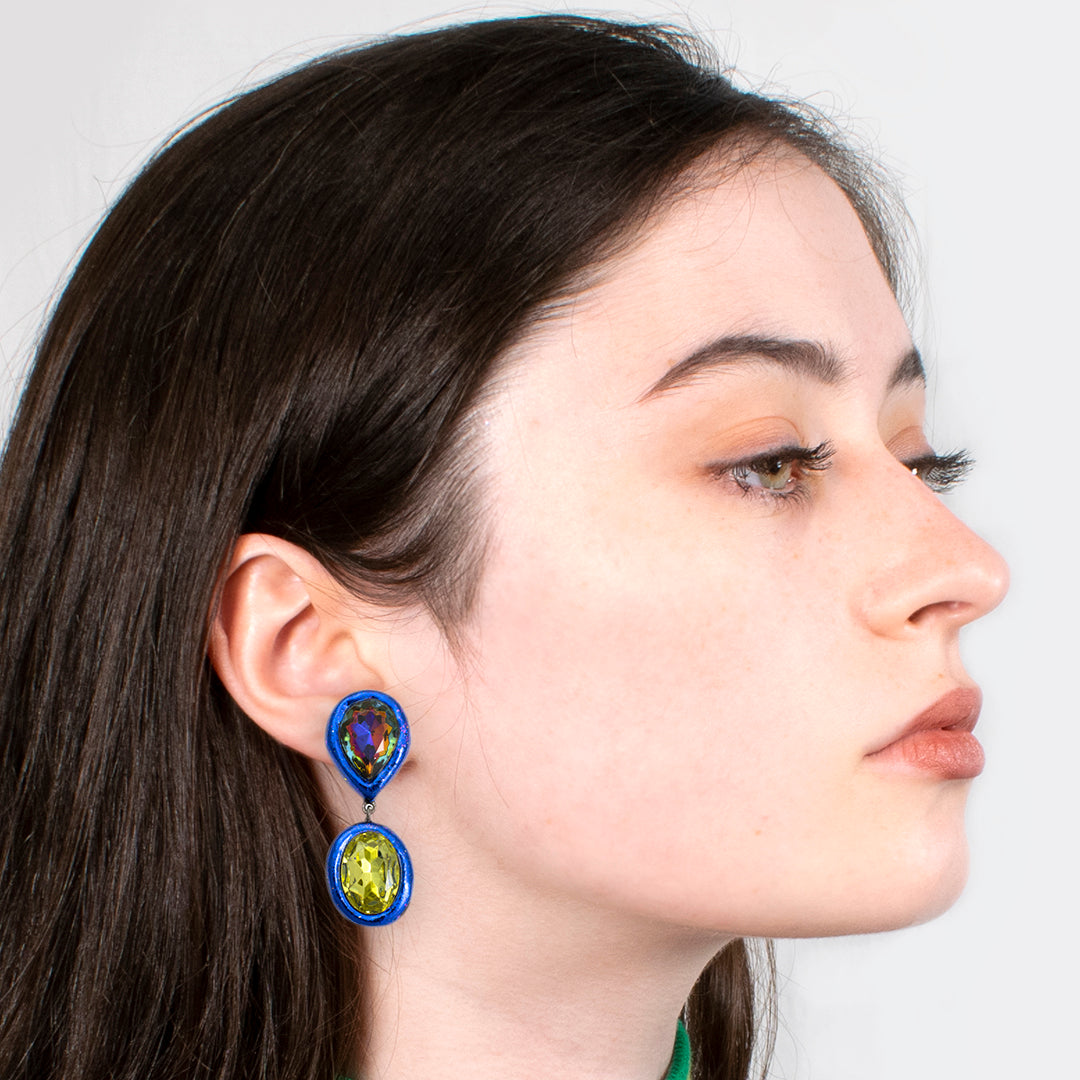 Elevate any look with a unique pair of Gem Drops, made just for you, with Claire’s careful selection of rare & vintage rhinestones set into your choice of metal leaf colors with sterling silver hardware.