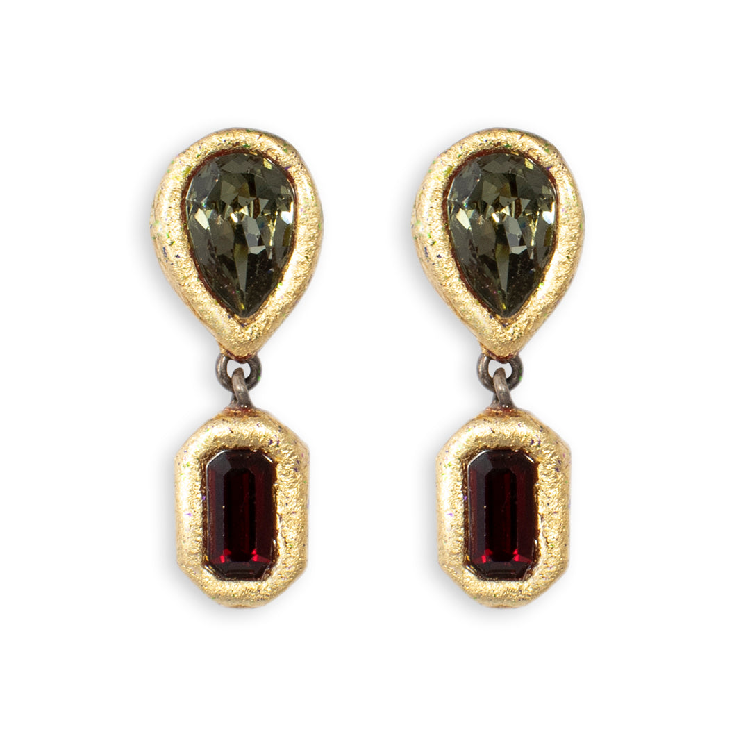 Elevate any look with a unique pair of Inverted Gem Drops, a ligher and more delicate version of our Gem Drops design, made just for you, with Claire’s careful selection of rare & vintage rhinestones set into your choice of metal leaf colors with sterling silver hardware.