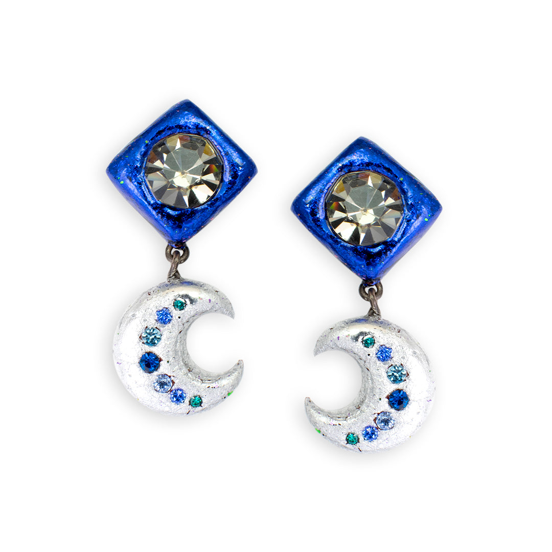 Tap into celestial powers with a pair of Moon Drops, made just for you, with Claire’s careful selection of rare & vintage rhinestones set into your choice of metal leaf colors.