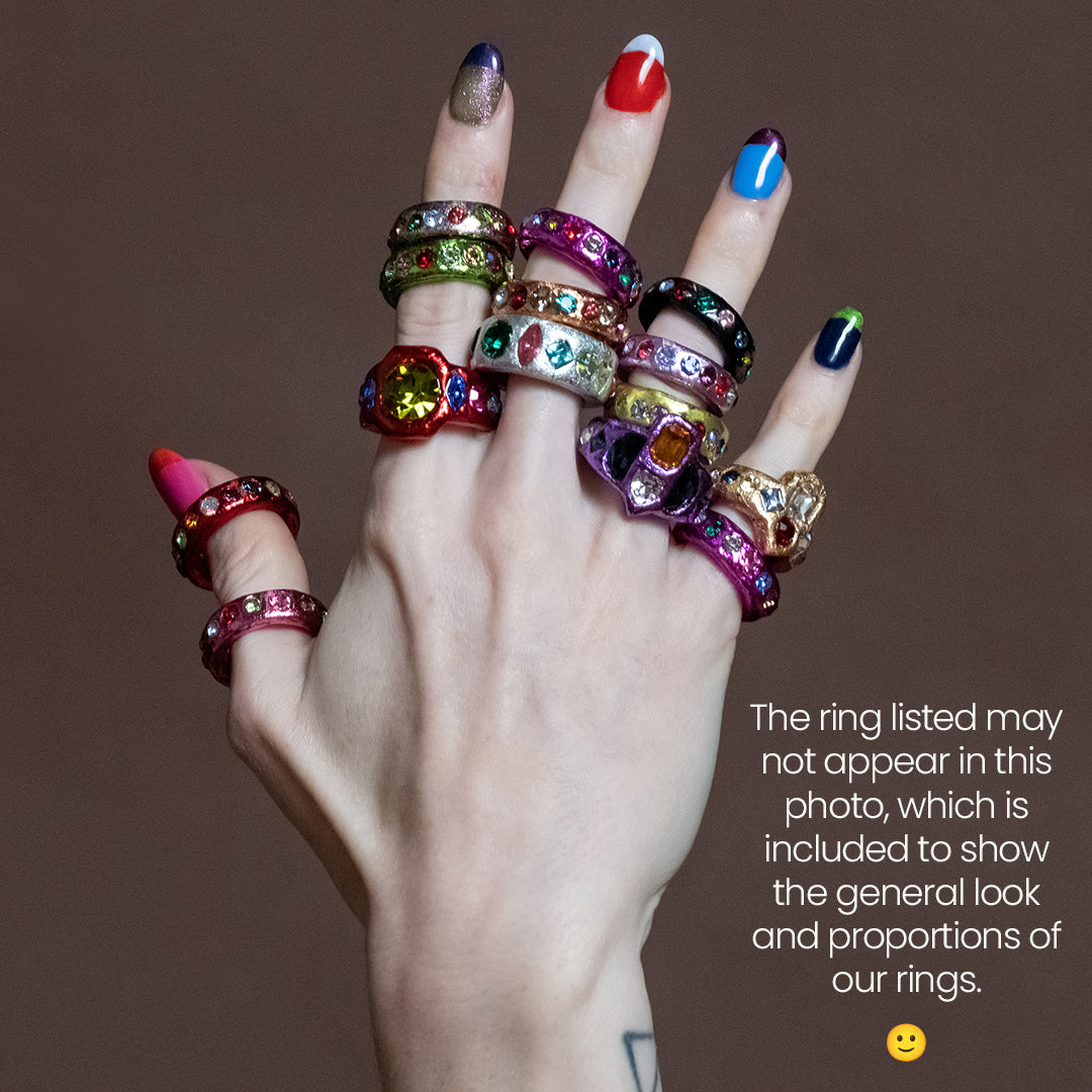 Focus your secret powers through a unique Center Stone that was made to be yours with vintage Swarovski rhinestones and Purple metal leaf.