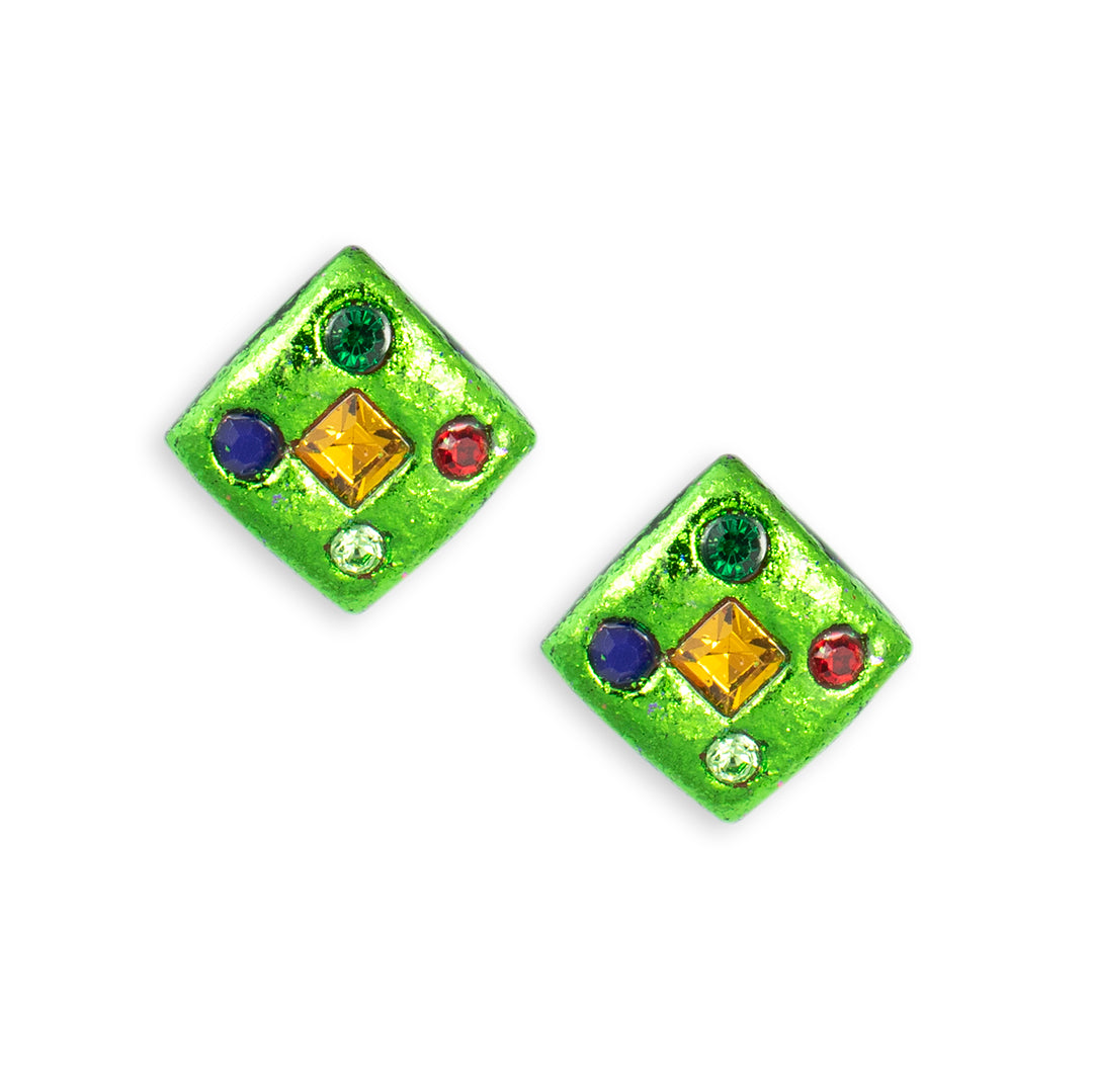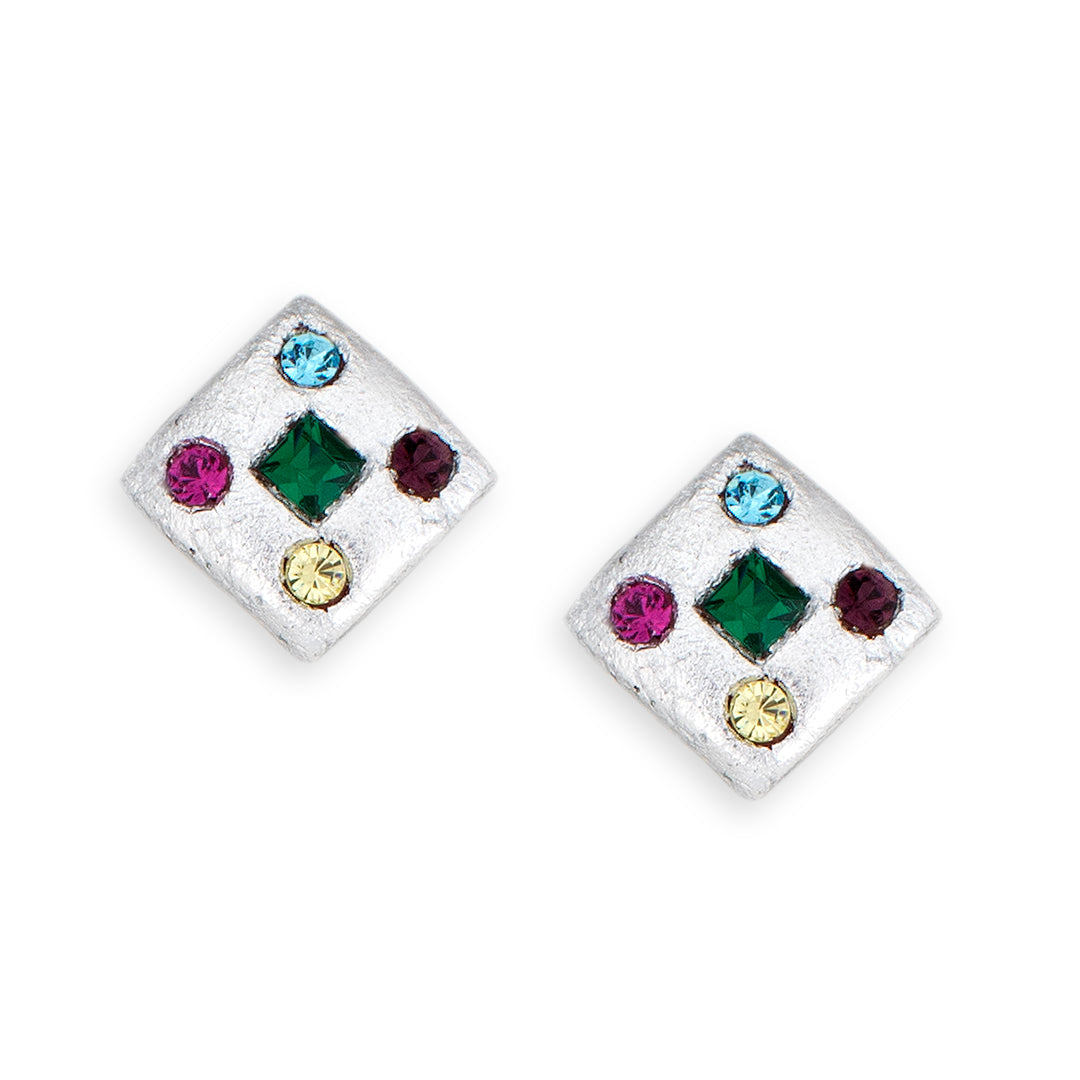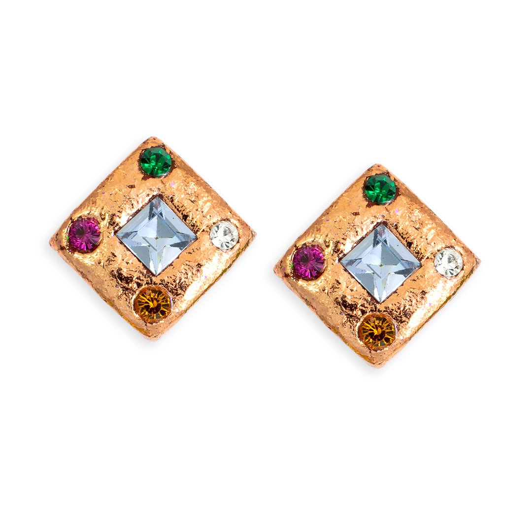 Sharpen your look with a pair of Square Studs, made just for you, with Claire’s selection of rare & vintage rhinestones set into your choice of metal leaf color with sterling silver hardware.