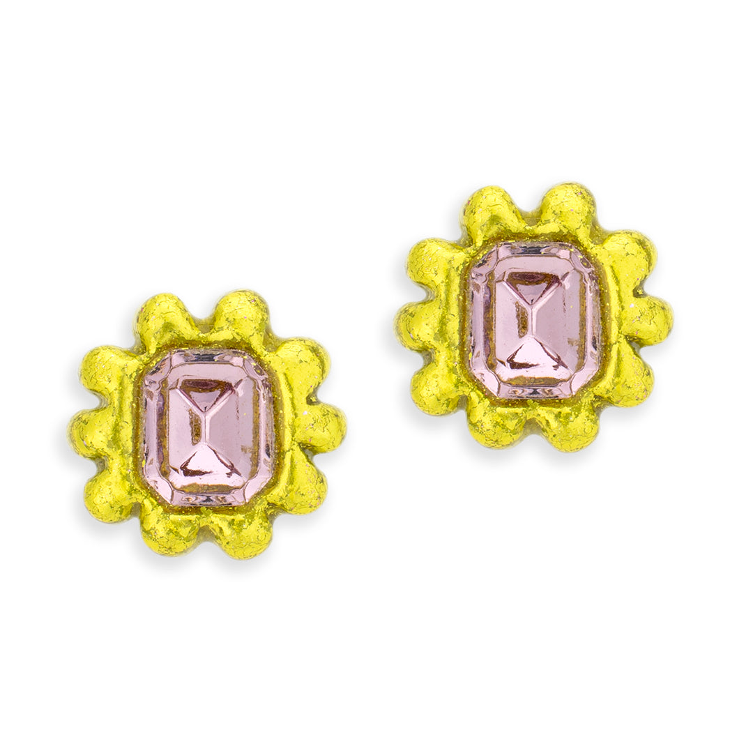 Elevate any look with a unique pair of Wiggle Gem Studs, made just for you, with Claire’s selection of rare & vintage rhinestones set into your choice of metal leaf color.